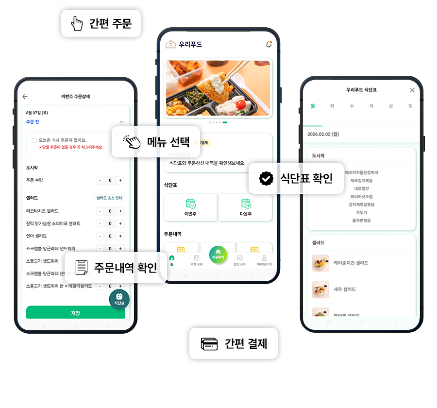 런치 플러스는 고객님이 우리푸드 앱에서 편하게 메뉴를 골라서 주문 하고 배송 받으실 수 있도록 앱 주문 서비스를 지원합니다.